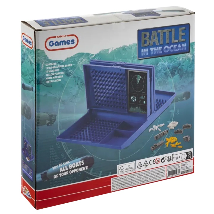 Grafix BATTLE IN THE OCEAN sjell emocionin klasik të strategjisë detare në tavolinën tuaj, duke ofruar një sfidë tërheqëse për dy lojtarë ku mendimi taktik dhe pak fat vendosin fituesin; i projektuar si një lojë e palosshme në stilin e anijeve luftarake, i lejon lojtarët të vendosin fshehurazi flotën e tyre, të gjurmojnë goditjet dhe dështimet, dhe të nisin hamendësime të synuara për të fundosur anijet e kundërshtarit të parët, duke e bërë atë një zgjedhje ideale për familjet, fillestarët dhe këdo që shijon seanca të shpejta por strategjike loje; me kutinë e saj kompakte, pjesët e detajuara të anijeve dhe dizajnin e qartë të frymëzuar nga radari, loja është e lehtë për t'u konfiguruar, ruajtur dhe mbajtur, perfekte për netët e lojërave në shtëpi ose argëtimin në udhëtim, duke inkurajuar logjikën, kujtesën dhe konkurrencën miqësore; i përshtatshëm për komandantët e rinj të moshës 5 vjeç e lart, Battle in the Ocean premton argëtim të arritshëm dhe me ritëm të shpejtë në çdo raund.