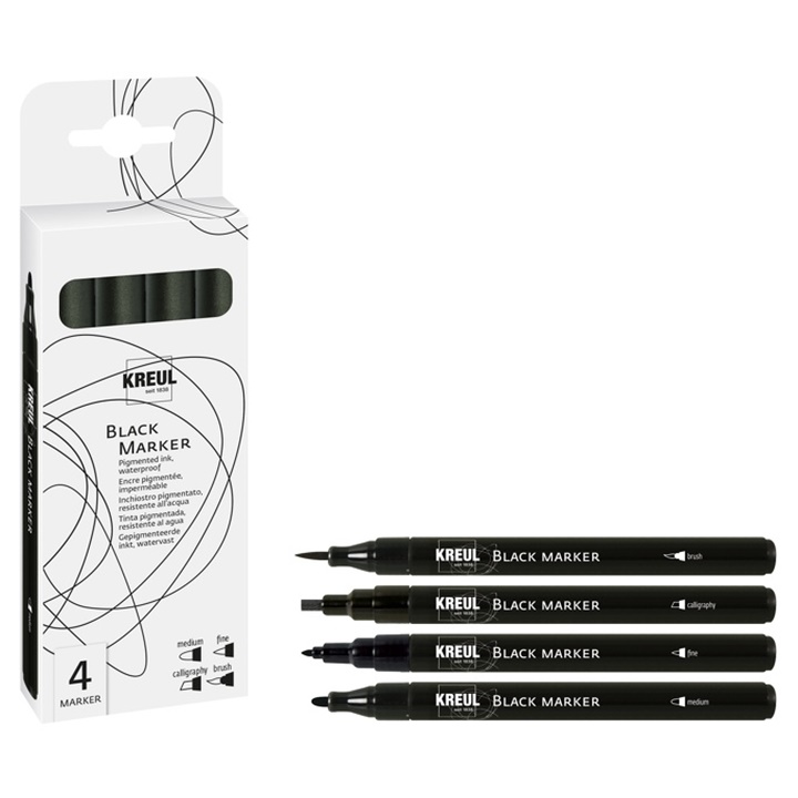 Introduction » Bojëra për hobi » Bojë sprej dhe markera akrilik » Set me shënues të zinj me maja të ndryshme 4 copë