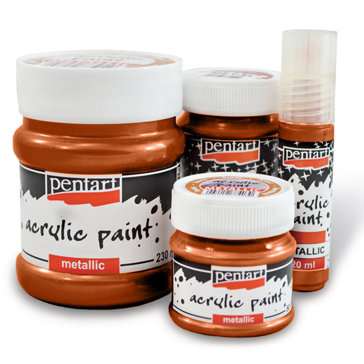 **Bojërat akrilike metalike** të Pentart dallohen me mbulimin e tyre të jashtëzakonshëm. Ata thahen me shpejtësi dhe mbeten rezistente ndaj ujit pas tharjes. Ideale për lyerjen e sipërfaqeve të ndryshme. Të krijuara mbi një bazë uji, ato përzihen pa probleme me ujë. Ata prezantojnë artistët me një spektër të gjerë ngjyrash rrezatuese dhe shumë intensive. Me një sasi të madhe pigmentesh metalike, ato prodhojnë efekte të shkëlqyera me shkëlqim në sipërfaqe. Këto janë **bojra arti** universale të cilësisë më të lartë. Ato nuk janë vetëm për pikturë artistike, por edhe perfekte për dekorimin e objekteve. Ata gëzojnë popullaritet të lartë midis piktorëve profesionistë, artistëve amatorë dhe krijuesve të hobi.