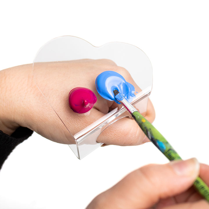 Paleta e dorës së zemrës është projektuar për punë delikate dhe precize nga artistë ose artistë të thonjve. E bërë nga materiali i tejdukshëm që lejon njohjen e lehtë të nuancave të ngjyrave. Mini paleta e lyerjes është ideale për përzierjen e detajuar të sasive të vogla të bojës, qoftë akrilike, bojëra uji apo gozhdë. Madhësia e saj kompakte dhe dizajni ergonomik me një prerje për mbajtje të rehatshme me dorë e bëjnë këtë paletë mjetin e përsosur për artistët dhe teknikët e thonjve që kërkojnë saktësi dhe kontroll mbi ngjyrat në punën e tyre. Paleta është gjithashtu e lehtë për t'u pastruar dhe është rezistente ndaj llojeve të ndryshme të bojrave, duke siguruar përdorim afatgjatë pa sakrifikuar cilësinë. Me përmasa afërsisht 75 x 75 mm dhe 2 mm të trashë, paleta është mjaft e fortë për përdorime të shumta, por mjaft e lehtë për t'u përdorur me lehtësi. Me rastin e dorëzimit, mini paleta e lyerjes ka një shtresë mbrojtëse në të dyja anët, të jashtme dhe të brendshme, e cila duhet të hiqet përpara përdorimit.