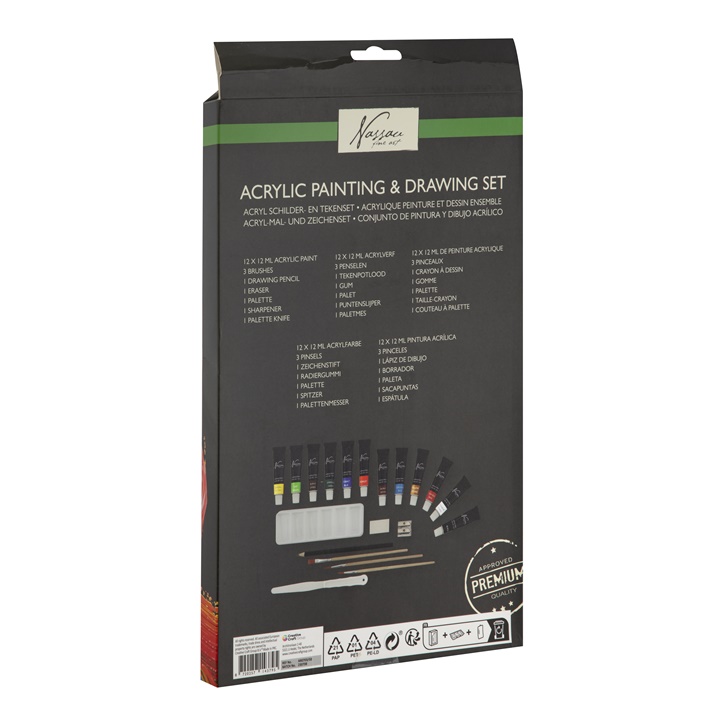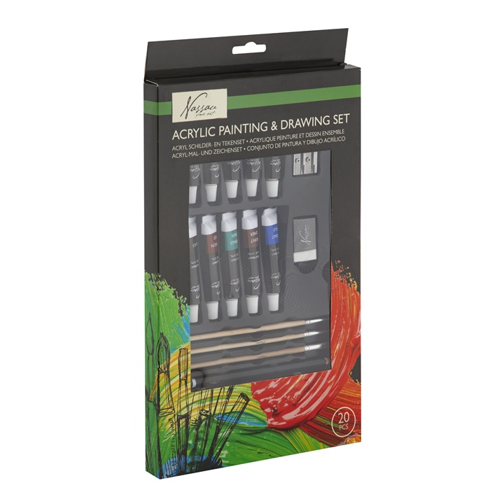 Ju prezantojmë setin perfekt nga Nassau , ideal për të gjithë të apasionuarit pas artit. Ky grup akrilik prej 20 pjesësh përmban gjithçka që ju nevojitet për të krijuar vepra mahnitëse akrilike. Në komplet do të gjeni nuanca të ndryshme të bojrave akrilike në tuba të cilësisë së lartë, furça të madhësive të ndryshme për aplikim të saktë të bojës dhe mjete të tjera të nevojshme për vizatim dhe lyerje. Bojërat akrilike njihen për gjallërinë, tharjen e shpejtë dhe efektin afatgjatë. Kjo e bën këtë set ideal për ata që duan të eksperimentojnë me teknika dhe sipërfaqe të ndryshme. I përshtatshëm si për fillestarët ashtu edhe për artistët e avancuar, kompleti ofron një gamë të gjerë opsionesh për krijimin dhe mundëson aplikimin e një sërë stilesh. Pavarësisht nëse jeni një piktor i etur ose jeni gati të eksploroni botën e artit të bukur, ky grup nga Nassau do t'ju japë gjithçka që ju nevojitet për të filluar. Është gjithashtu një këshillë e shkëlqyer dhuratë për dashamirët e artit të çdo moshe.