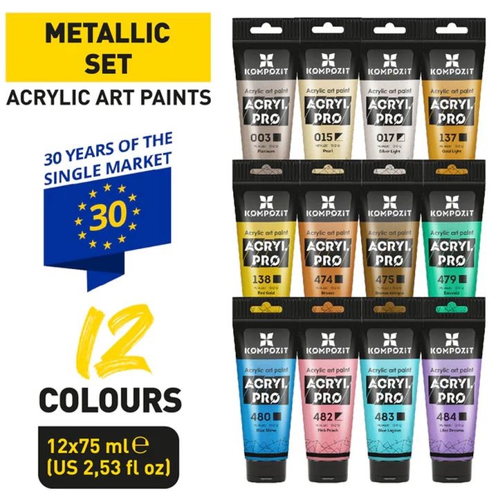 Set për bojëra akrilike ACRYL PRO METALLIC